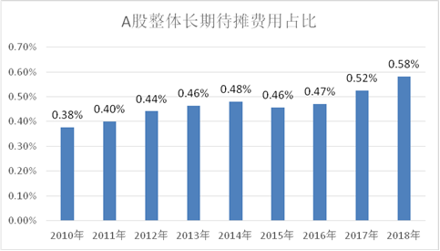 图1 A股整体长期待摊费用/资产总计比例(2010~2018)
