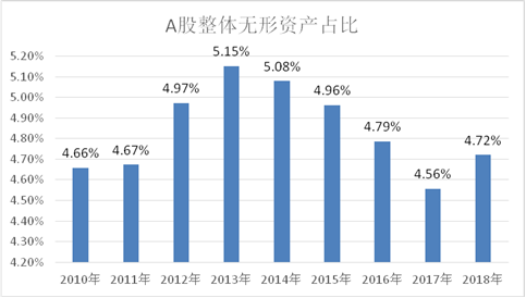 图1 A股整体无形资产/资产总计比例(2010~2018)