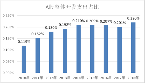 图2 A股整体开发支出/资产总计比例(2010~2018)