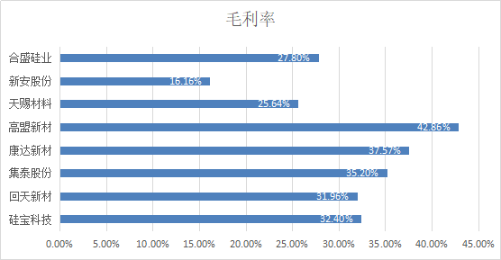 下表为2019年硅宝科技及其同行业竞争者的毛利率数据,可以发现该行业下列企业中,毛利率在16.16%—42.86%之间,硅宝科技的毛利率处于主要竞争对手中的中上水平。