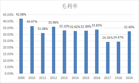 从纵向分析来看,硅宝科技的毛利率水平呈下降趋势(从2009年的42.08%下降至2019年的32.4%,其中2017年、2018年创历史新低),这可能与全行业市场变化相关,也可能与硅宝科技自身产品竞争力的削弱相关。