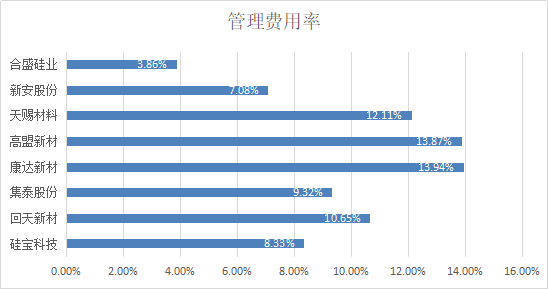 下表为2019年硅宝科技及其同行业竞争者的管理费用率数据,该行业下列企业中,管理费用率在3.86%—13.94%之间,硅宝科技的管理费用率率处于主要竞争对手中的中等水平。