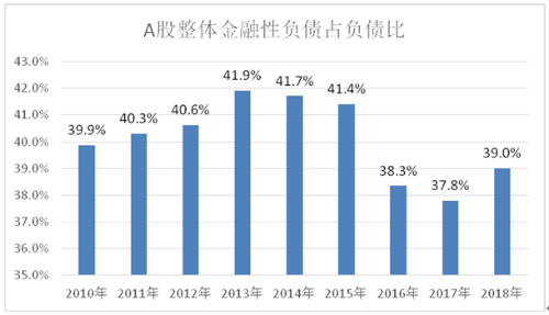 图1 A股整体金融性负债/负债总计比例(2010~2018)