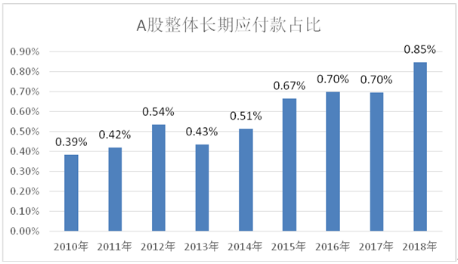 图1 A股整体长期应付款/资产总计比例(2010~2018)