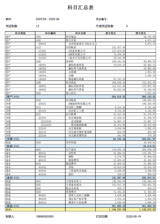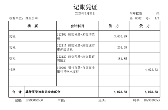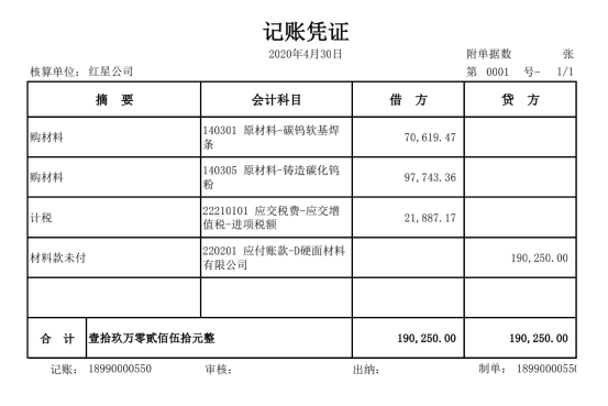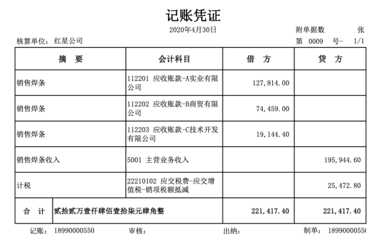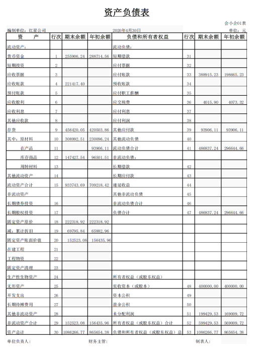 以下为红星公司2020年4月会计资料,本节将按照科目汇总表账务处理程序举例如下: