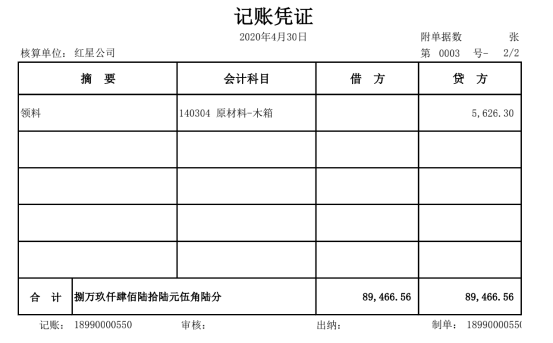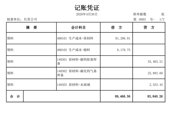 3号凭证(生产领料)